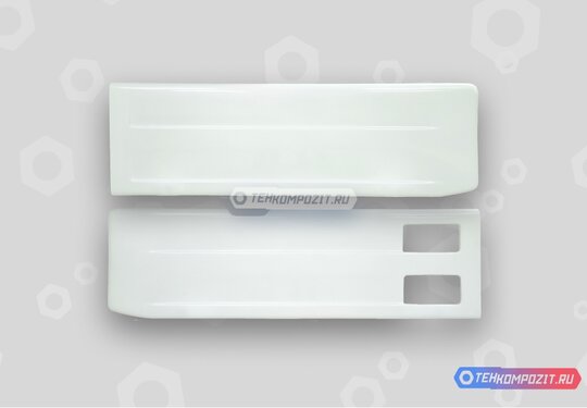 Комплект межосевых спойлеров Man TGX для защиты топливных баков и улучшения аэродинамики. В комплект входят спойлер левый сплошной, спойлер правый с подножкой, комплект креплений. Спойлеры на Man TGX выполнены в белом цвете под покраску. Межосевые спойлеры изготовлены из стеклопластика с использованием стеклоткани для улучшения прочности. Кронштейны покрашены полимерной порошковой краской, крепятся в штатные места. Крепления с откидными механизмами.